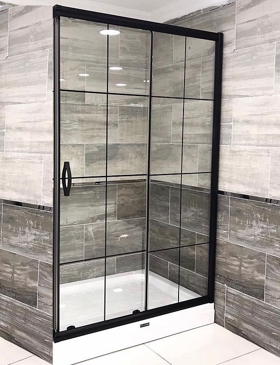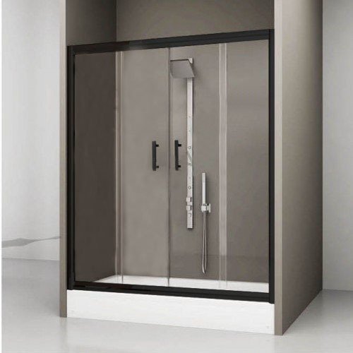 Dar banyolar için şık ve işlevsel çözüm! Teknesiz Mika Siyah Profil Düz Duşakabin, üçlü sistem (1 sabit + 2 sürgülü)