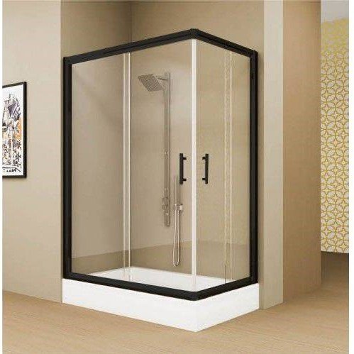 Modern banyolar için sade ve şık tasarım! Teknesiz Mika Siyah Profil Düz Duşakabin, iki duvar arası montaj ve 2 sabit 2 sürgülü kapı sistem