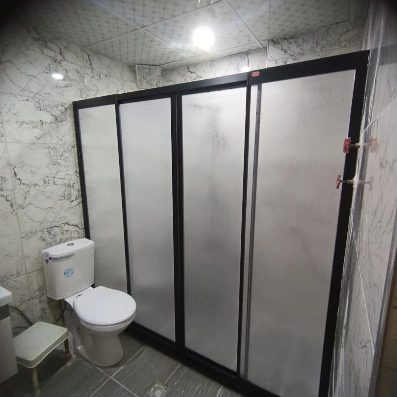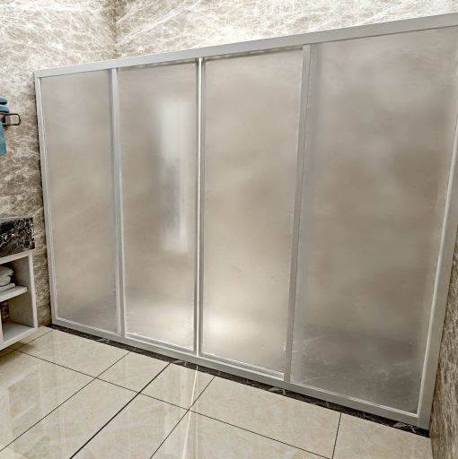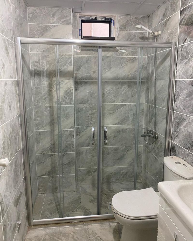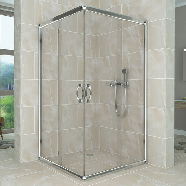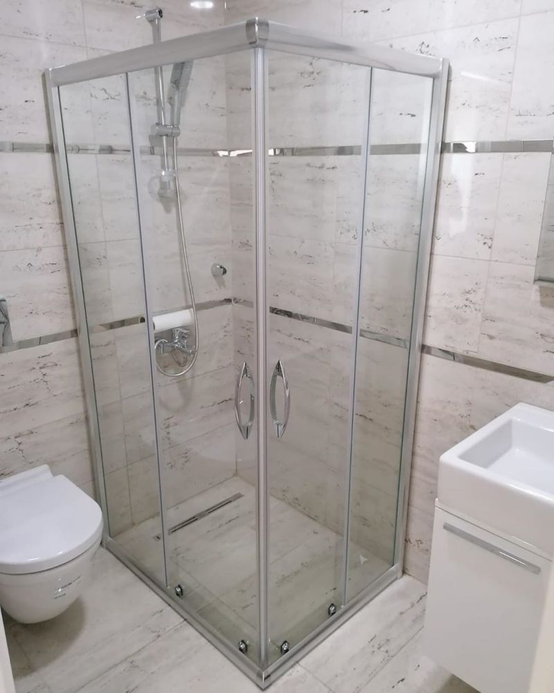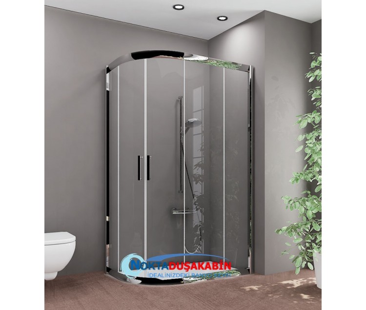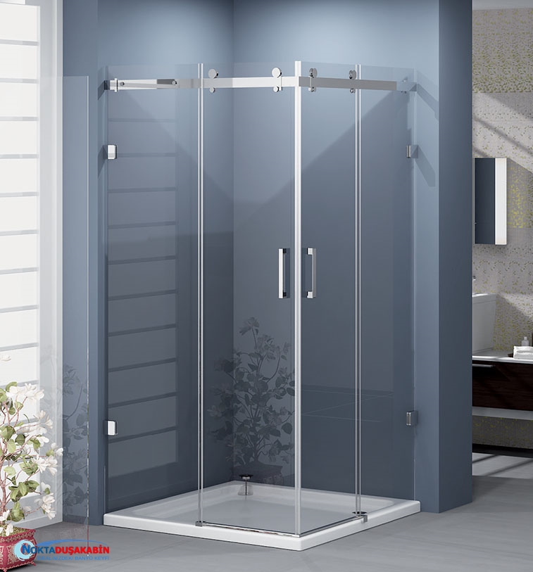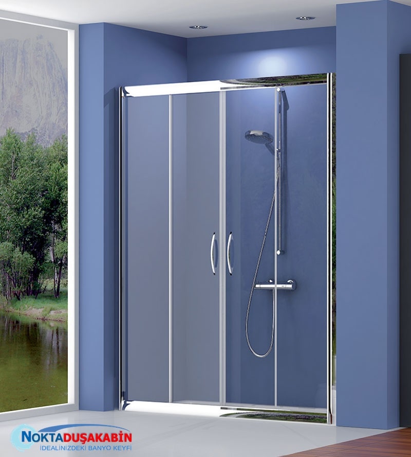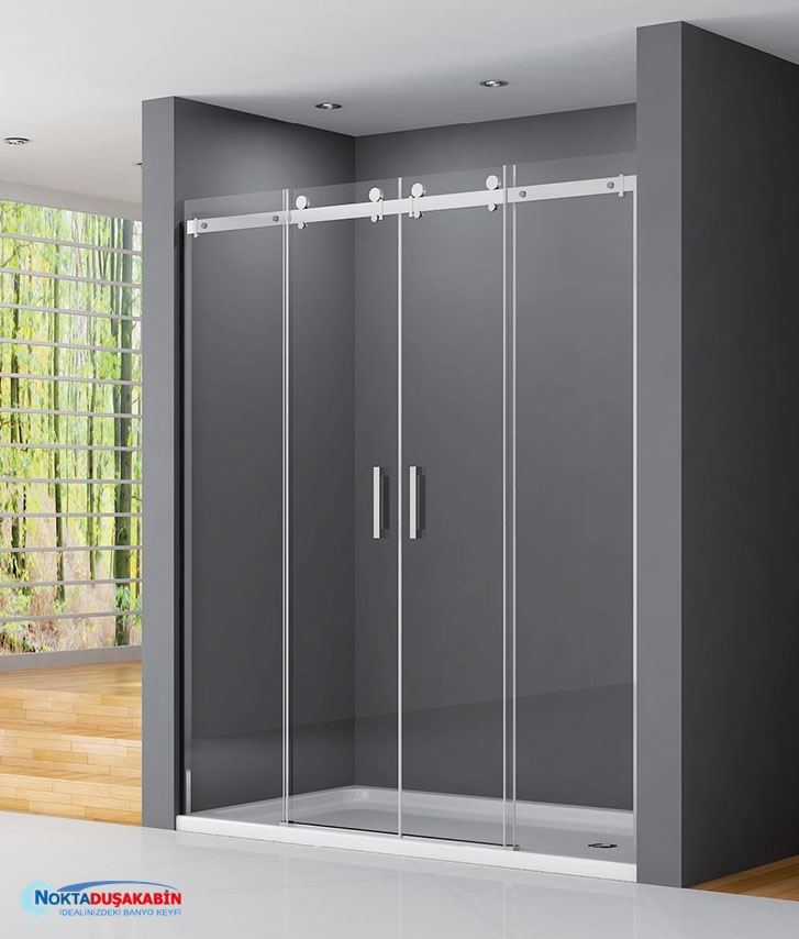 İki duvar arası mika camlı duşakabin, geniş banyolar için ideal kullanım sunar. 2 sabit + 2 sürgülü kapı sistemiyle ferah giriş sağlar.
