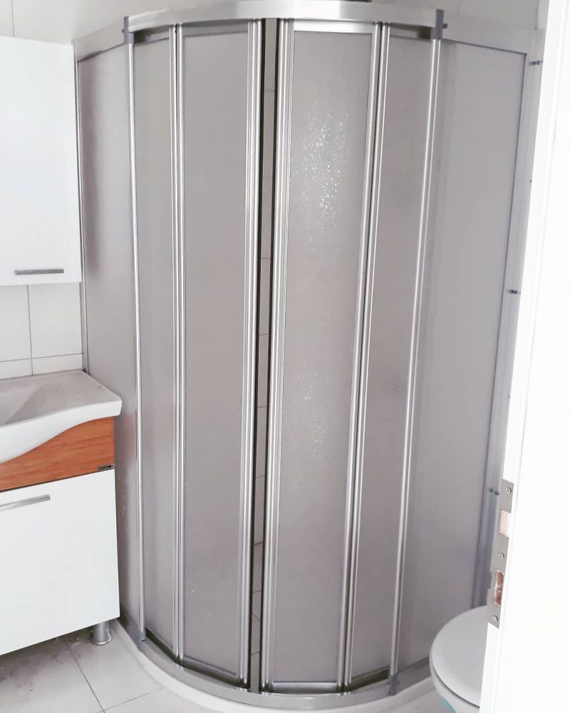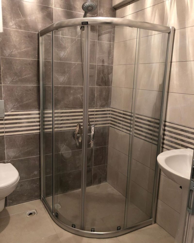 Oval Pleksi Camlı Duşakabin – Teknesiz Model | Alüminyum Profilli, Sürgülü Kapı | Modern Banyo Tasarımı | İstanbul Avrupa Yakası Ücretsiz Montaj