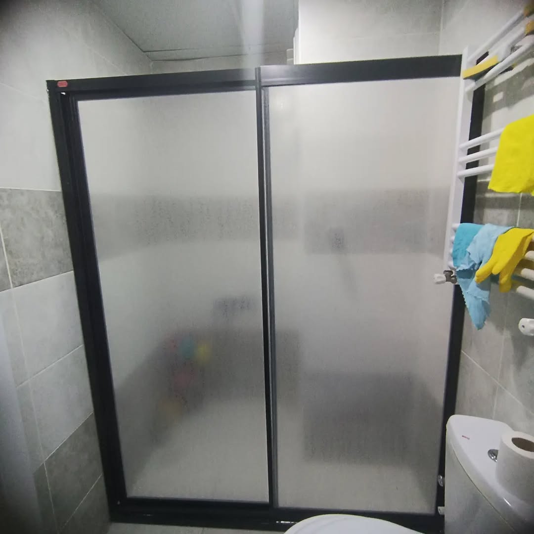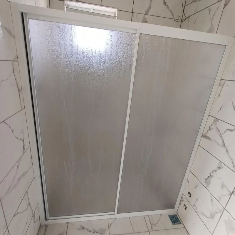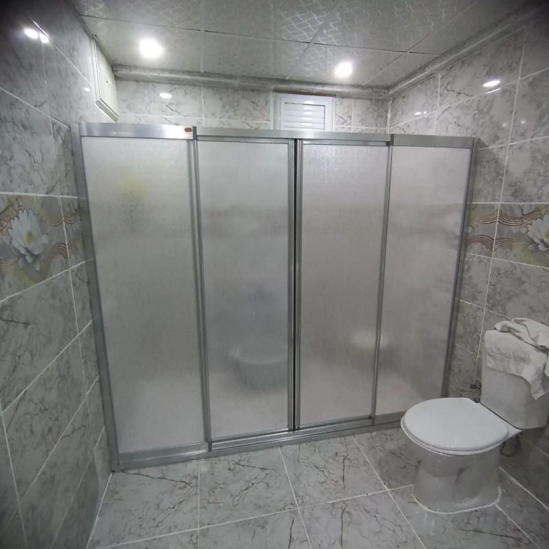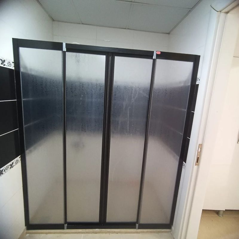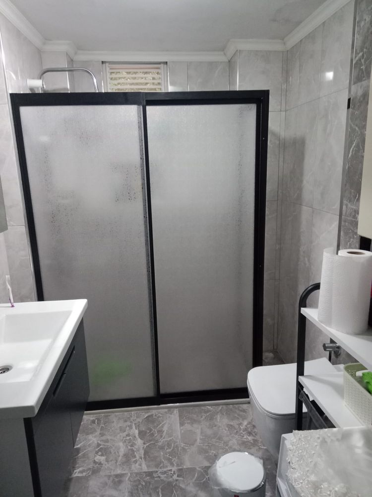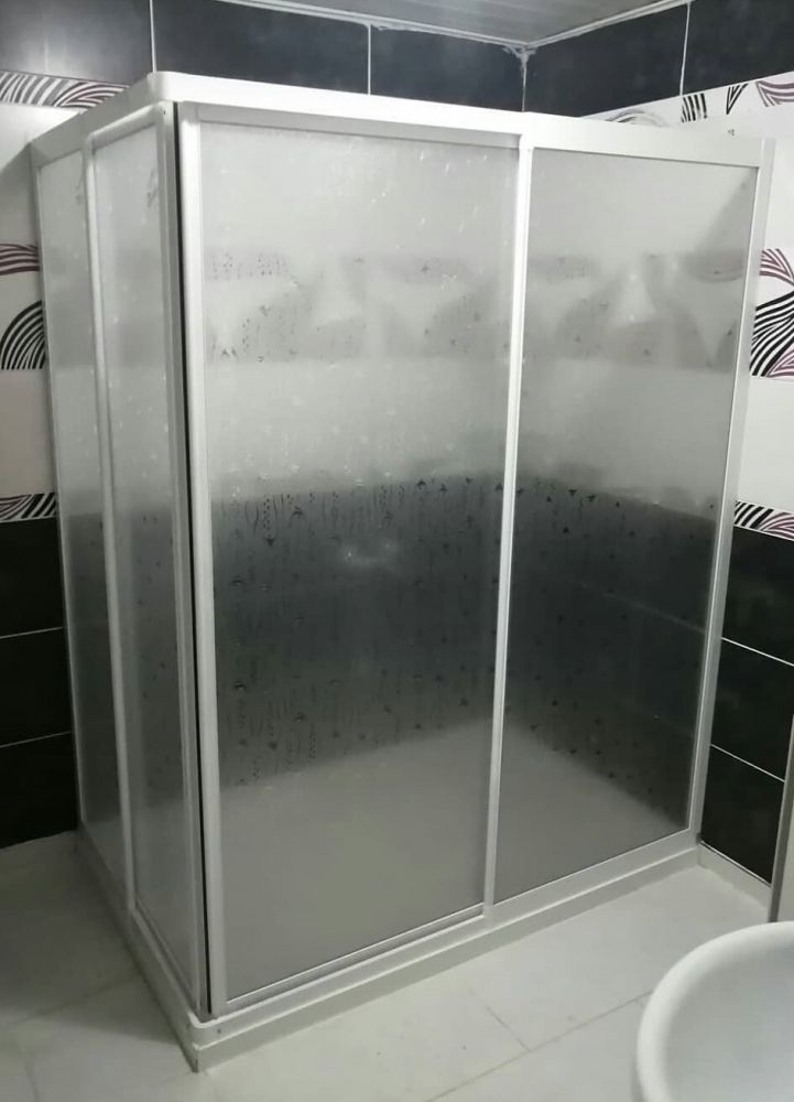 Kare mika plastik camlı duşakabin, sade tasarımı ve dayanıklı alüminyum profiliyle modern banyolara şıklık katar