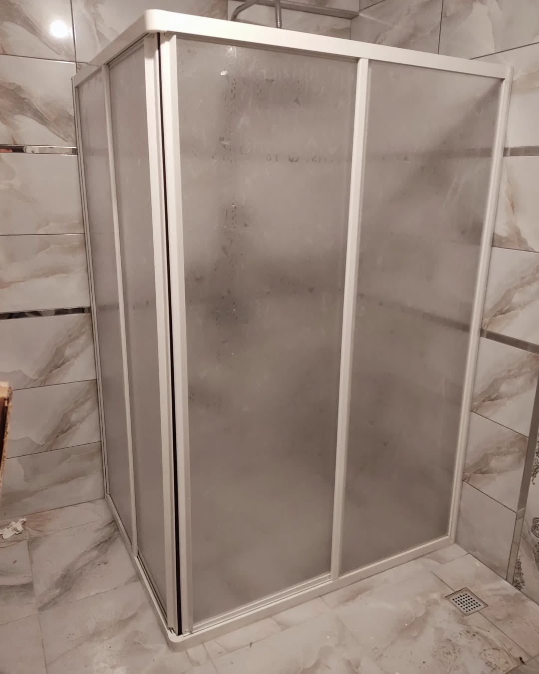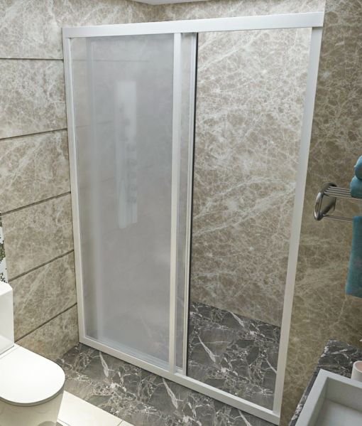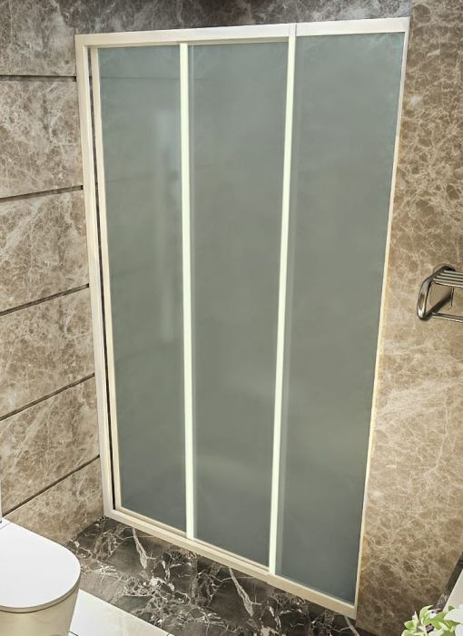 Teknesiz Mika Duşakabin ND402 | 1 Sabit + 2 Sürgülü Panel | Beyaz Profil | Dar Alanlar İçin Şık ve Pratik Çözüm