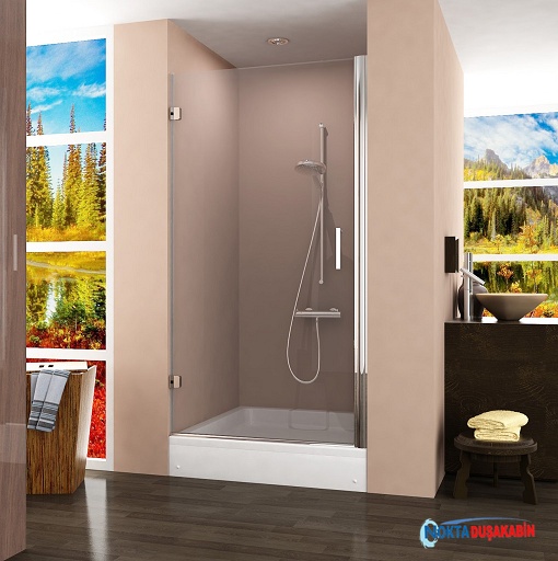Durans Menteşeli Duşakabin, sabit paneli bulunmayan kelebek kapı sistemiyle geniş giriş alanı sağlar.